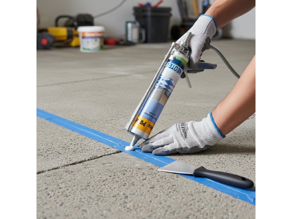 Aplikácia Neotex PU Joint na dilatačné škáry (s nástrojmi zo setu):