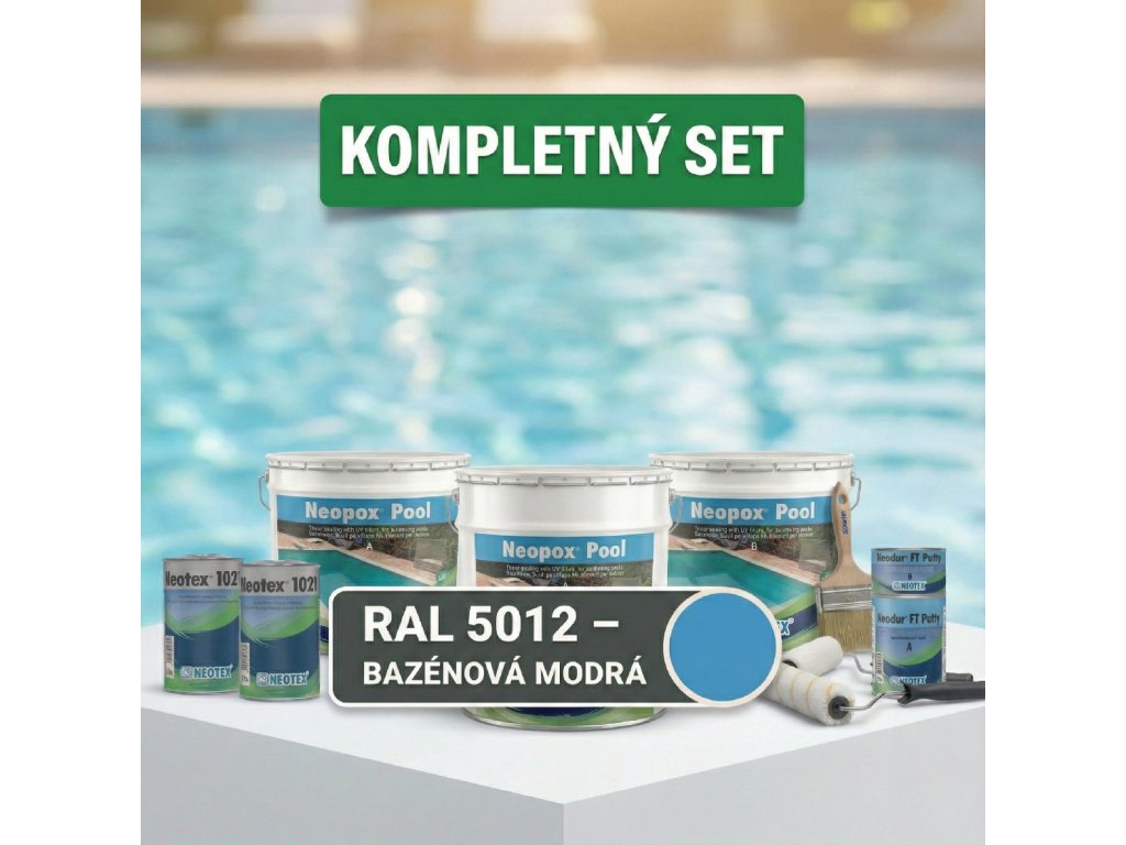 | Neopox Bazén modrá – epoxidová živica | 3× 10 kg (A+B), modrá | Hlavný epoxidový náter (3 vrstvy) |