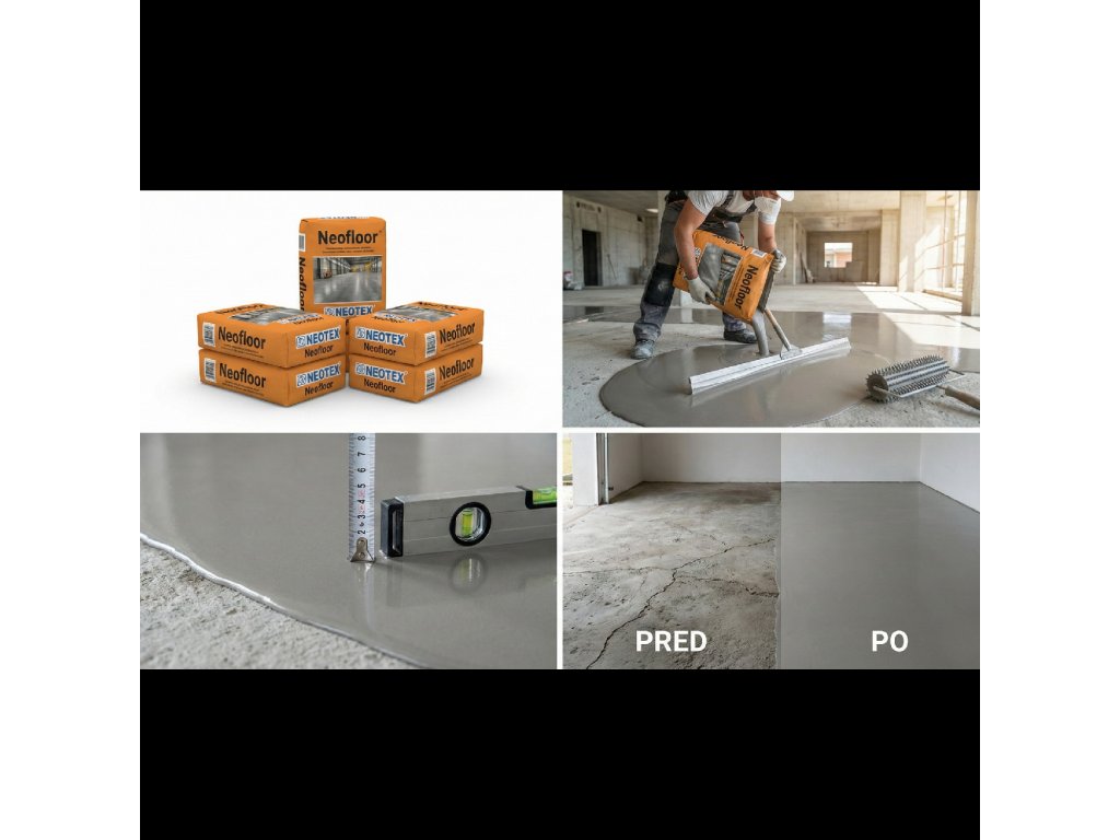 Máš nerovnú betonovú podlahu a chceš ju pripraviť na finálnu úpravu? Neofloor® je cementová samonivelačná hmota, ktorá sa sama rozleje do dokonale rovnej vrstvy. Stačí ju správne premiešať, naliať a ona spraví svoju prácu – ty len pomôžeš stierkou a odvzdušňovacím valčekom.