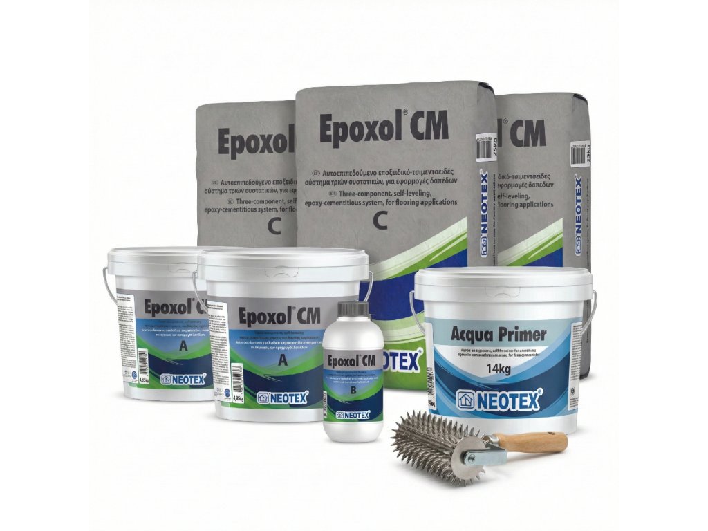 Epoxol CM (30 MPa): Epoxidovo-cementový systém, funguje ako bariéra proti zvyškovej vlhkosti (bez vzlínania), ideálny mostík pod živicové systémy, možnosť aplikácie na čerstvý betón (min. 2 mm).