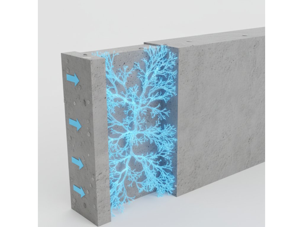- Aktívna oprava trhlín: Ak v betóne neskôr vznikne prasklina (do 0,4 mm), kryštály v prítomnosti vlhkosti znova narastú a dieru samy „vyliečia".